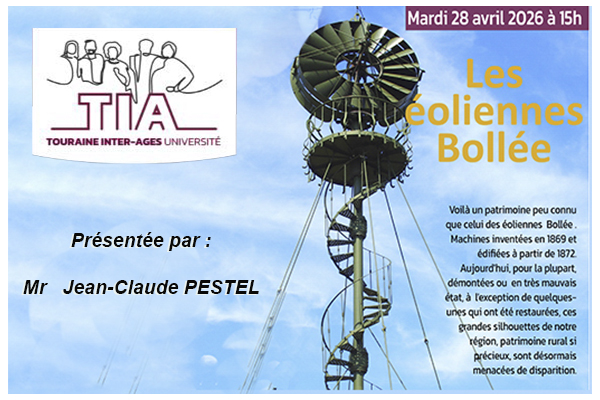 Conférence présentée par J.C. PESTEL Depuis l’an 2000, je m’intéresse à un patrimoine peu connu celui des éoliennes « Bollée » machines inventées en 1869 et édifiées à partir de 1872. Aujourd’hui ces machines sont pour la plupart soient démontées ou en très mauvais état, quelques unes ont étaient sauvées et restaurées mais en définitive très peu. […]