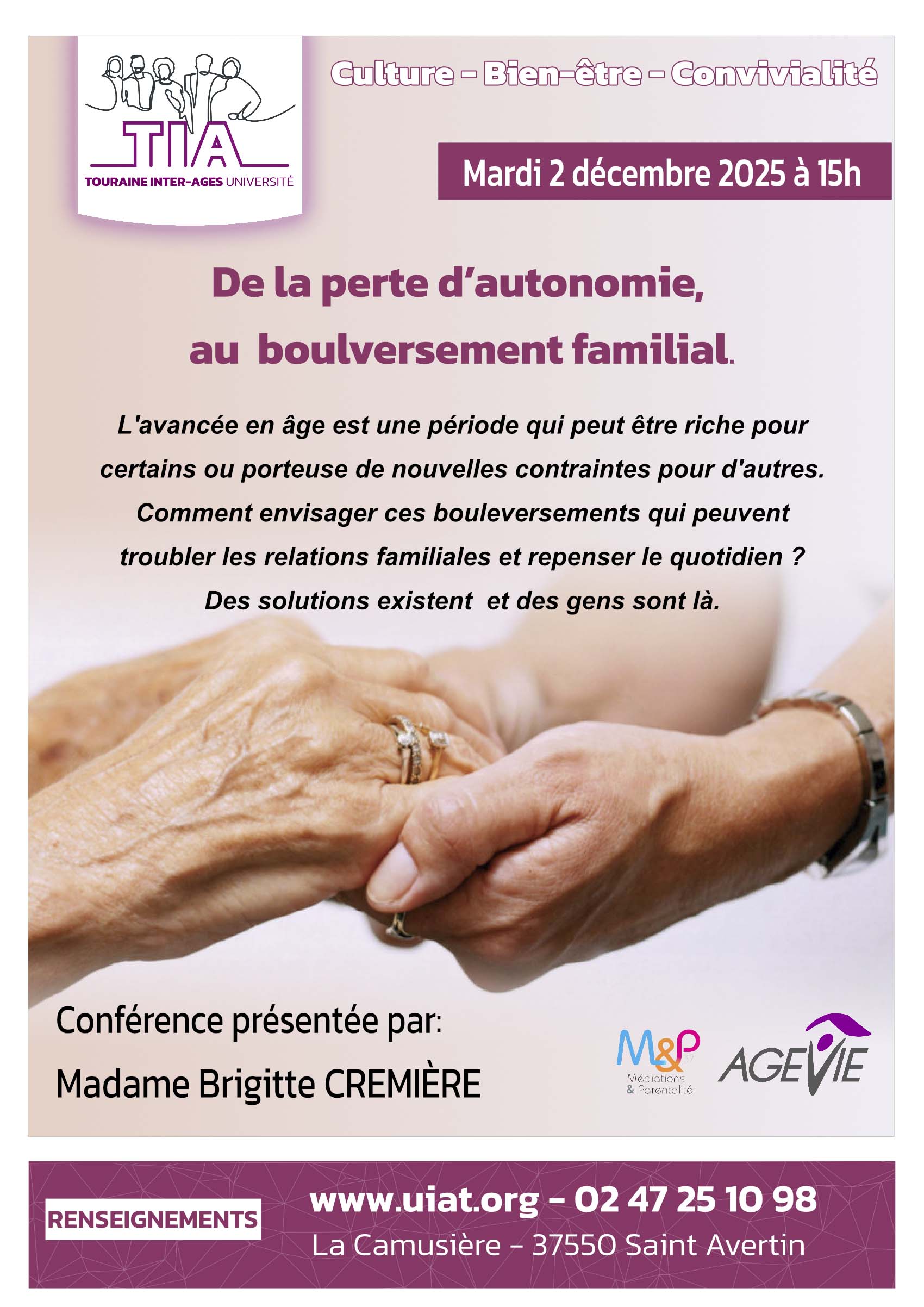L’ avancée en âge suscite des perspectives diverses. Pour certains , elle représente une période propice à la découverte , à de nouveaux engagements et à l’ enrichissement personnel , c’ est bien ce que TIA sait nous proposer.