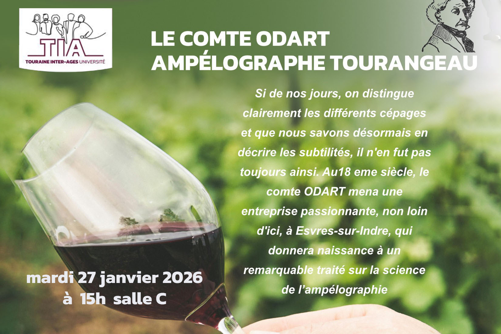 Au cours de la conférence nous retracerons la vie du comte Odart et son œuvre pour la viticulture.