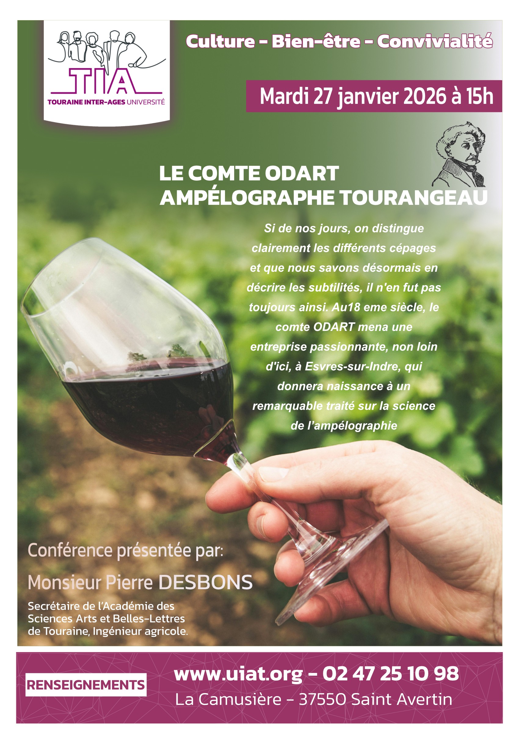 Au cours de la conférence nous retracerons la vie du comte Odart et son œuvre pour la viticulture.